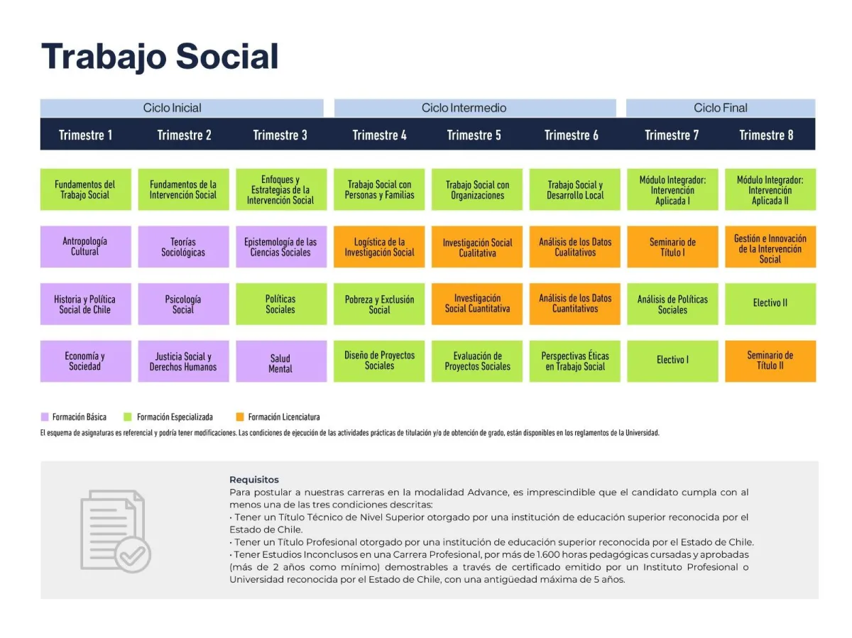 El egresado de la carrera de Trabajo Social es un profesional que puede desempeñarse en los diversos ámbitos de la intervención social y la investigación social. Cuenta con un proceso formativo caracterizado por perspectivas conceptuales y epistemológicas propias de las ciencias sociales y diversas estrategias y metodologías de intervención social. Lo anterior, permitirá que tenga capacidades para desarrollar análisis críticos y complejos de la realidad social, fundamentar e implementar diversas intervenciones sociales efectivas e innovadoras considerando el contexto social, así como el desarrollo justo y equitativo de la sociedad.